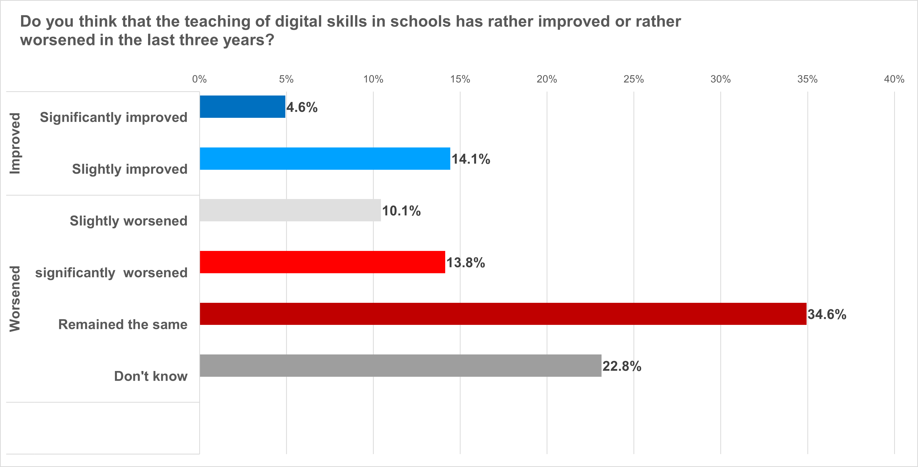 - Around a quarter of respondents say the teaching of digital skills in schools has deteriorated in the last three years