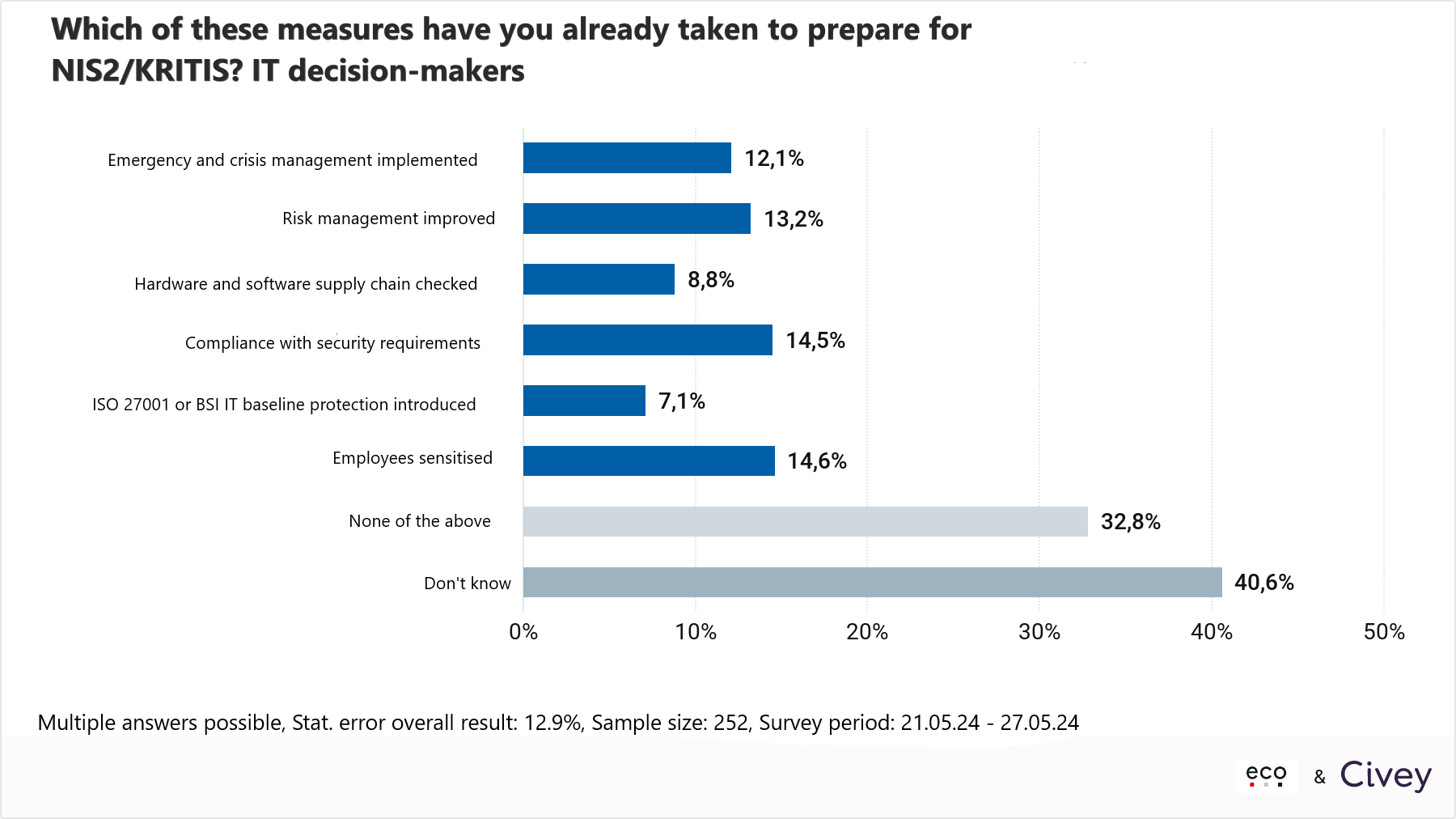 eco survey reveals: One-third of the surveyed IT decision-makers have not yet taken any measures to fulfil the increased security requirements of NIS2.