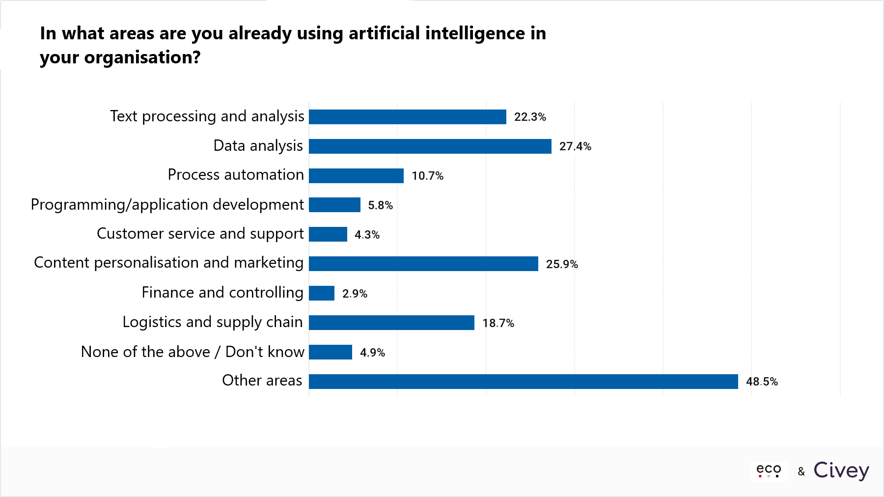 - One in four companies (27.4%) already uses AI to analyse and process texts