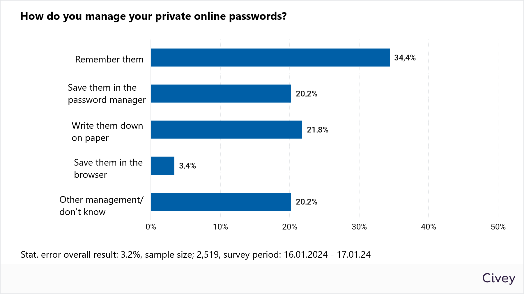 - One in three Germans (34.4 per cent) stores their online passwords mentally, according to an eco survey conducted on the occasion of Change Your Password Day on 1 February